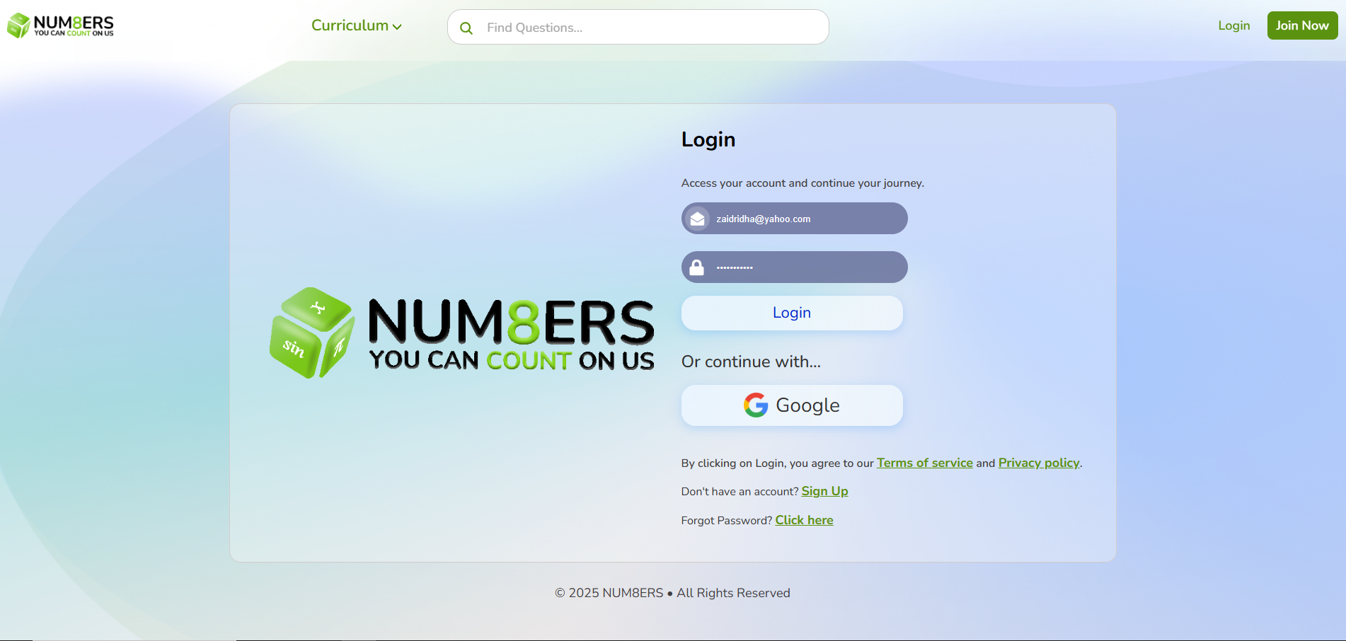 Num8ers Learning Platform