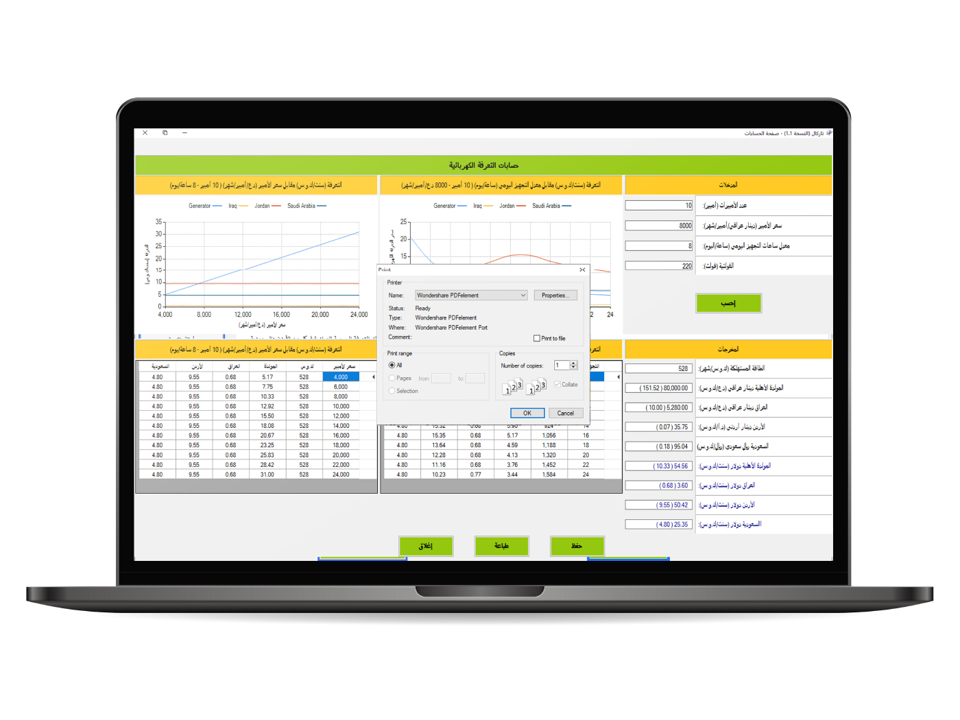 Energy analytics platform calculating electricity tariffs across Iraq, Jordan, and Saudi Arabia. Converts load to kWh, compares government tariffs, and estimates solar system requirements. Used by ministries and citizens for fair energy pricing.